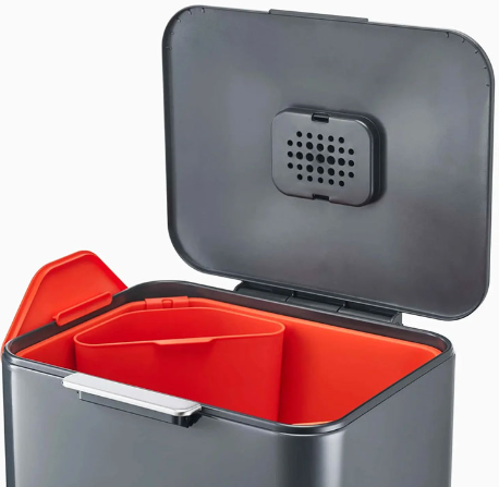 Aquest Totem té un disseny guardonat que combina tots els seus residus i reciclatge en una unitat compacta. Compta amb dos compartiments de 20L disposats en vertical, que estalvien espai i fan que sigui molt fàcil omplir-los i buidar-los. Cada compartiment té una galleda extraïble en el qual es pot col·locar una única bossa estàndard o dues bosses més petites per separar diferents tipus de reciclatge, usant els ganxos per a borsa integrats. Els respiradors en els laterals de les galledes faciliten la retirada de les bosses plenes. Totem també compta amb un filtre antiolor ventilat de carbó actiu substituïbles a la tapa principal que ajuda a reduir la humitat i l’olor que s’acumulen per les escombraries. Elegant, pràctic i durador. Les bosses a mida per als compartiments principals, i els recanvis del filtre antiolor estan disponibles per separat. Aquest model té un acabat en acer amb recobriment en pols fàcil de netejar. Superfícies externes: Netegeu amb un drap humit i s’assequi amb un drap sec i suau. Mesures 30×36.6×76 cm. 10 anys de garantia