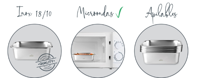 Recipient d’acer inoxidable 18/10 apte per al microones.