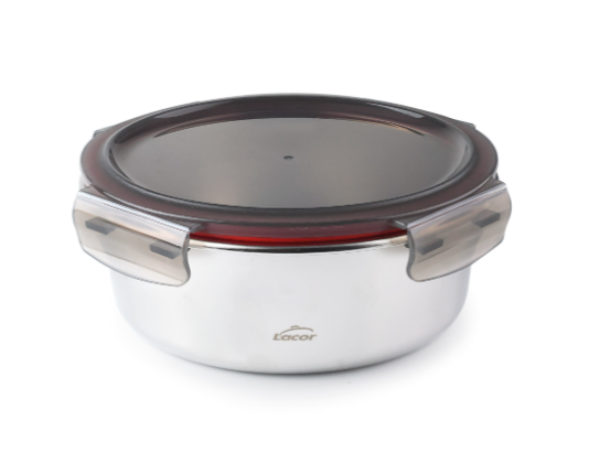 Recipient d’acer inoxidable 18/10 apte per al microones i tapa de polipropilè.